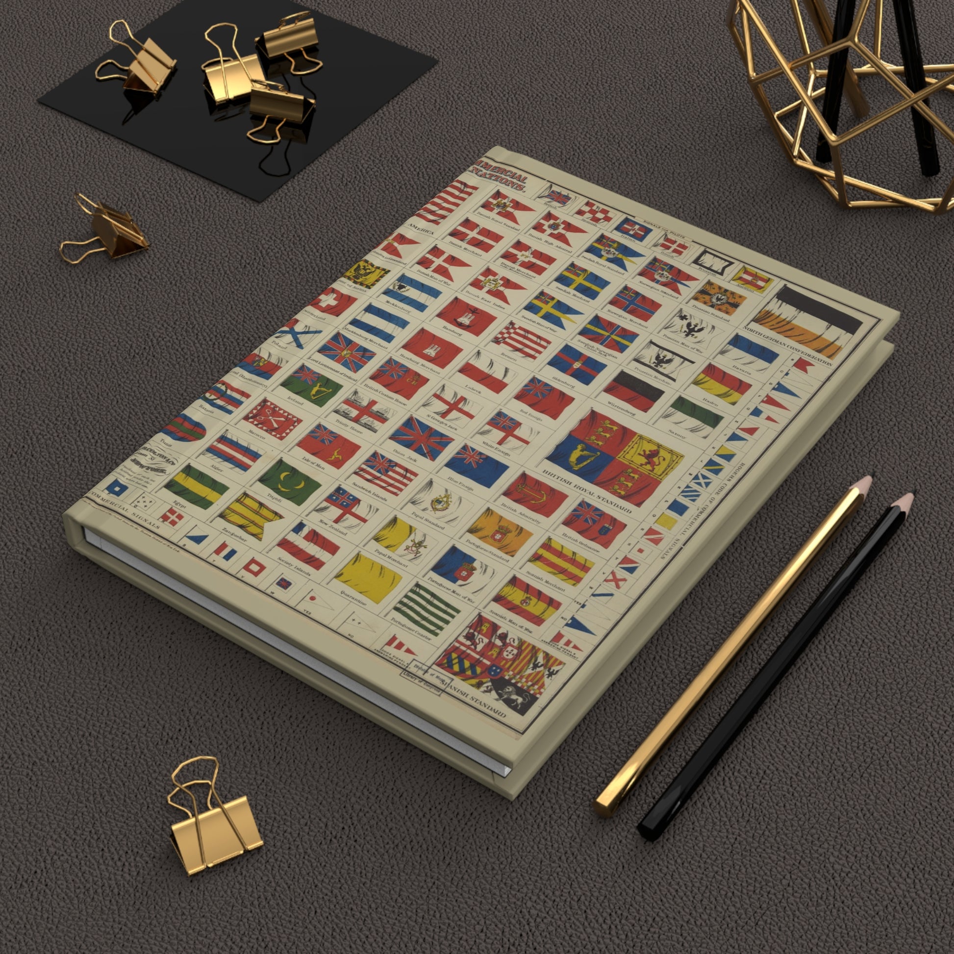 Flags of All Nations Hardcover Journal — World Map Patriotic Notebook